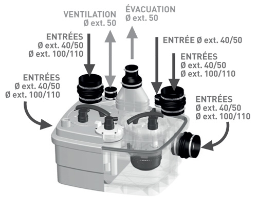 Diamètre des entrées DN 40, 50, 100, 110 40, 50, 100, 110