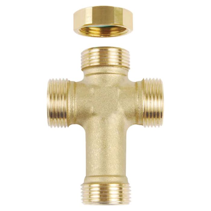 Croix de dérivation 3/4" Mâlee pour kit de sécurité KMIX pour chauffe-eau, avec un bouchon et son joint. Facilite le branchement d'un vase d'expansion sanitaire VEXBAL.