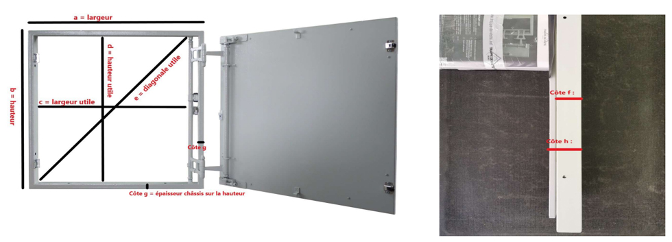 Côte h: Epaisseur trappe totale (châssis + porte) |