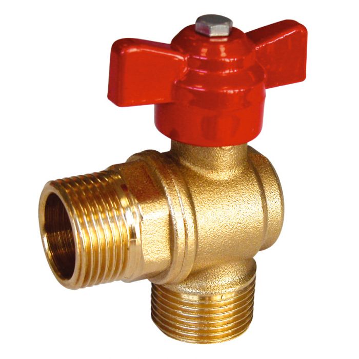 Vanne à sphère laiton équerre - PN16 - Mâle 3/4" Mâle 3/4" - Manette papillon rouge - Sferaco