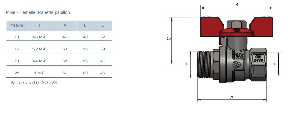 Vanne à sphère PN25NILE ACS Manette Papillon rouge Mâle/Femelle 1"(26x34)